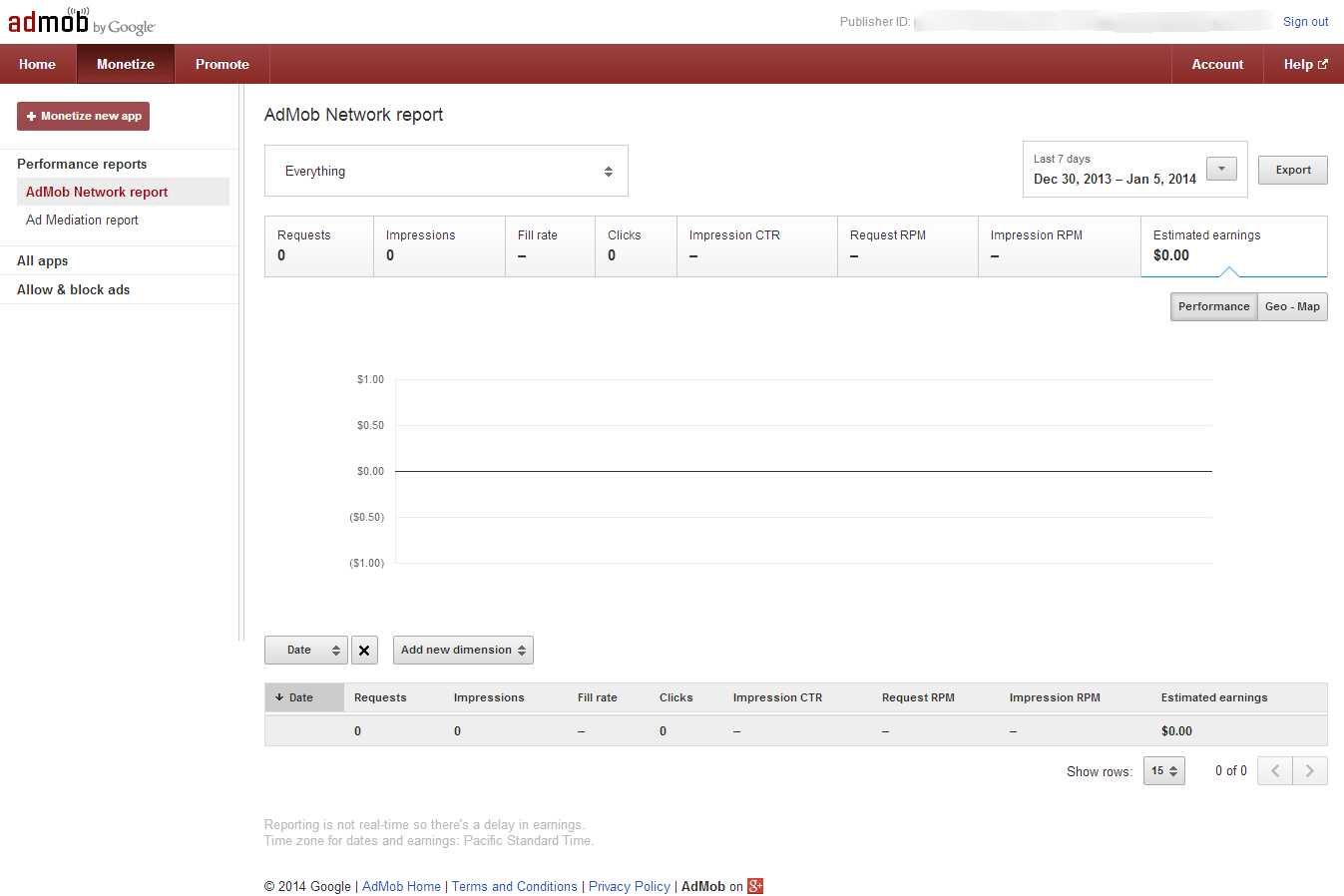 Also similar to AdSense is the reporting interface. AdMob features a detailed and customizable reporting dashboard that allows for both basic and advanced analytics.