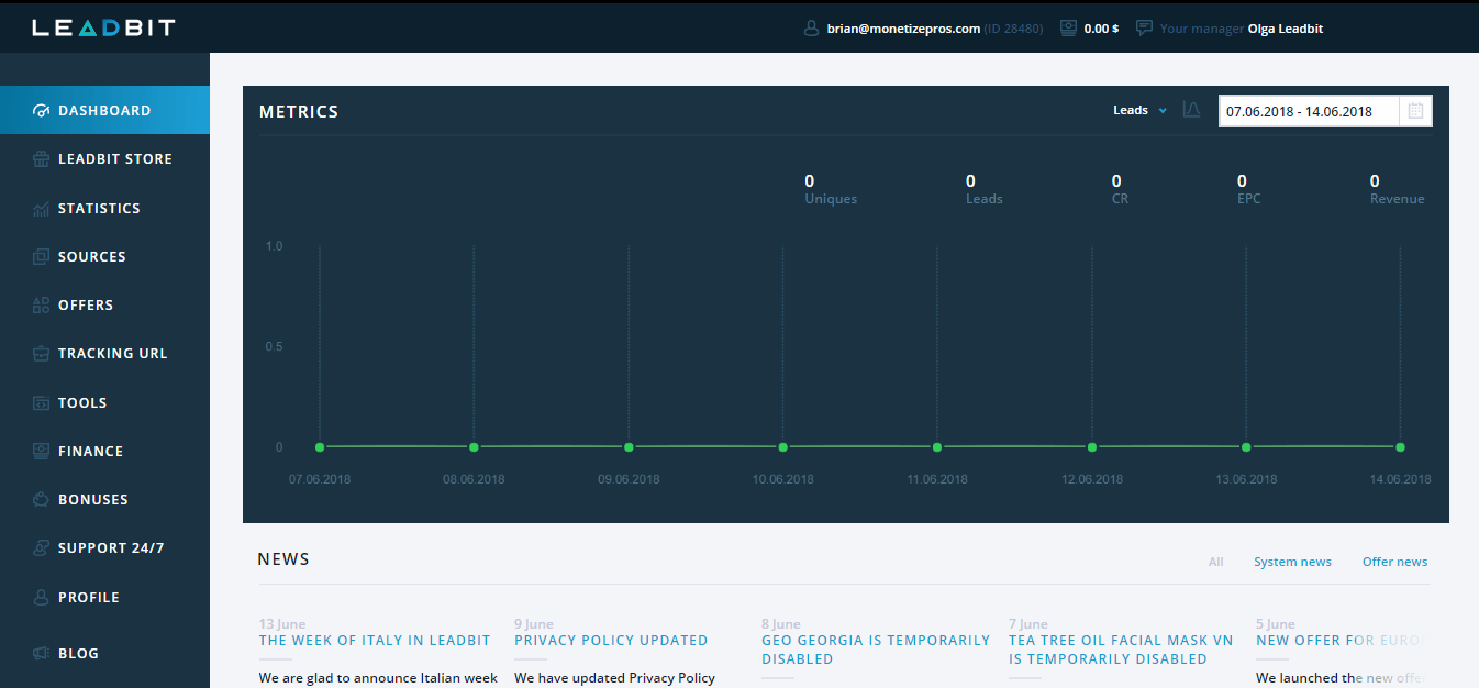 Aside from your conventional set of metrics and stats, you can also access the Leadbit store which contains their own store from wherein you earn points for a successful referral. You can then use those points to purchase multiple items ranging from a car to phone to gadgets. You can also get access to the tracking URL, the tools, support, and Bonuses.